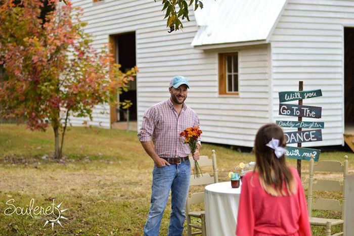 Garmon's surprise included a bouquet of flowers, a pitcher of iced tea and a sign that posed the question, "Will you go to the daddy-daughter dance with me?"