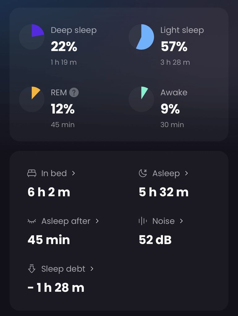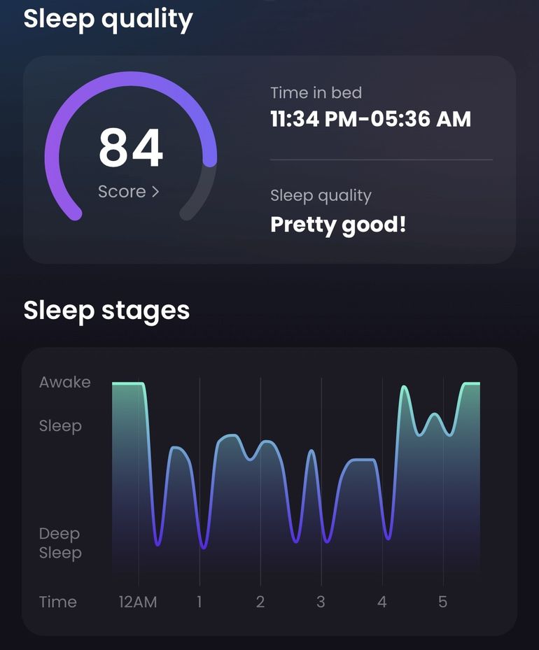 Seeing this data every morning was fascinating for someone like me who loves numbers and patterns. I could easily spot trends and see how my habits affected my sleep quality.