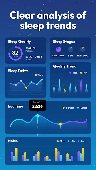 It’s easy to use, insightful, and gives you a clearer picture of your nightly habits. Plus, it has features that make you aware of your sleep patterns in a fun, interactive way.