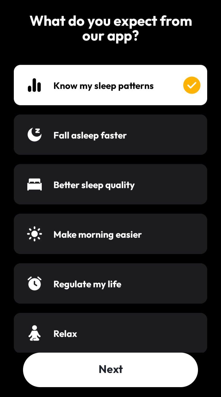 It asked me what I expected from the app and what kinds of sounds I wanted it to track during the night. I selected dream talk, snoring, teeth grinding, coughing, and laughing.
