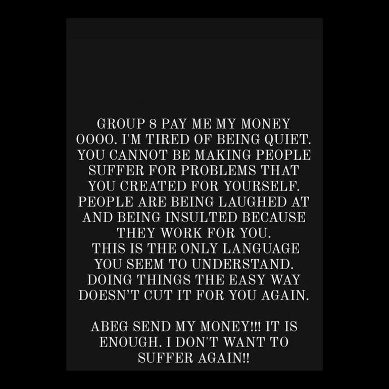 Group8’s got quite a reputation, and genuinely, we would like to know.. quite honestly, how those who work there are doing. Really, how are you doing? Are you good? When last did you get paid? It’s essential to have these conversations.