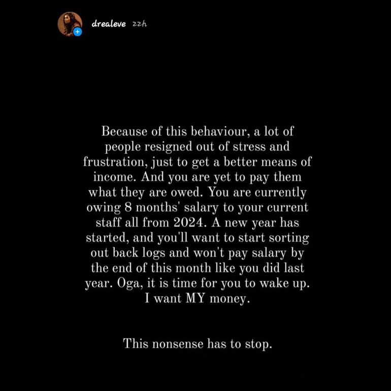 Similarly, drealeve, a radio presenter with Urban96 radio station accused the station of failing to pay staff salaries over the past eight months.