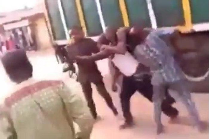 The mob were captured in a video engaging the policeman in a physical combat which the latter lose his rifle.