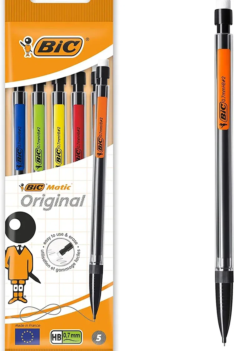 BIC Matic Original 0.7mm Mechanical Pencils 5 Pack, Black