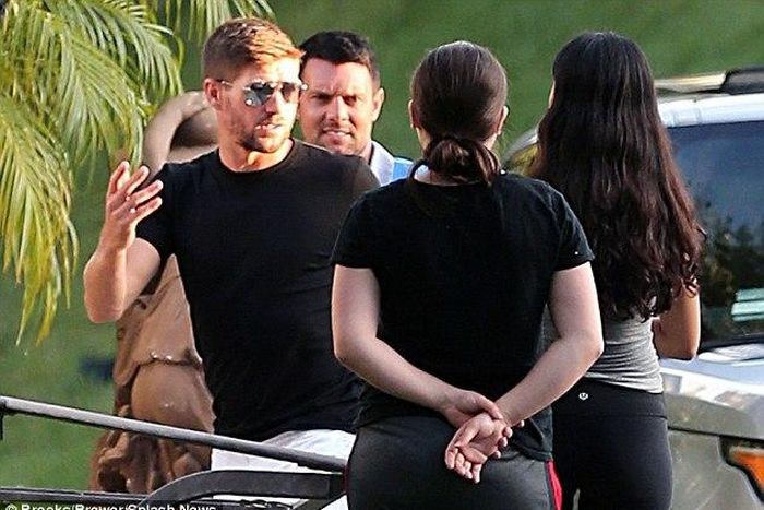 The midfielder who will now be playing for the LA Galaxy arrived in Los Angeles at the weekend with his wife Alex Curran and was pictured meeting with his new neighboirs.