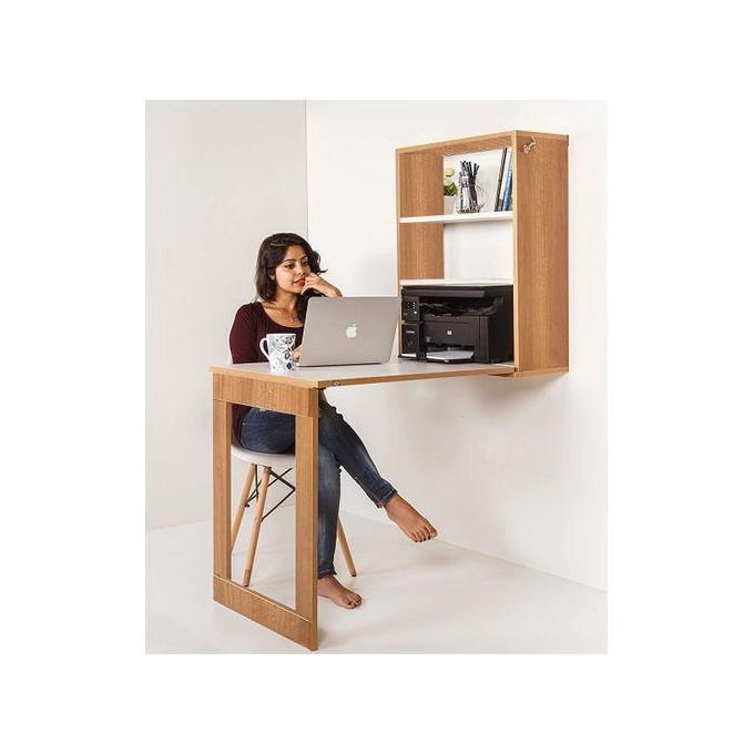 This simple wooden desk offers a clean workspace with open compartments for easy storage, ideal for minimalists with small rooms or home offices. It fits laptops, books, and essentials comfortably. The design is stable, easy to assemble, and comes in multiple colours.
