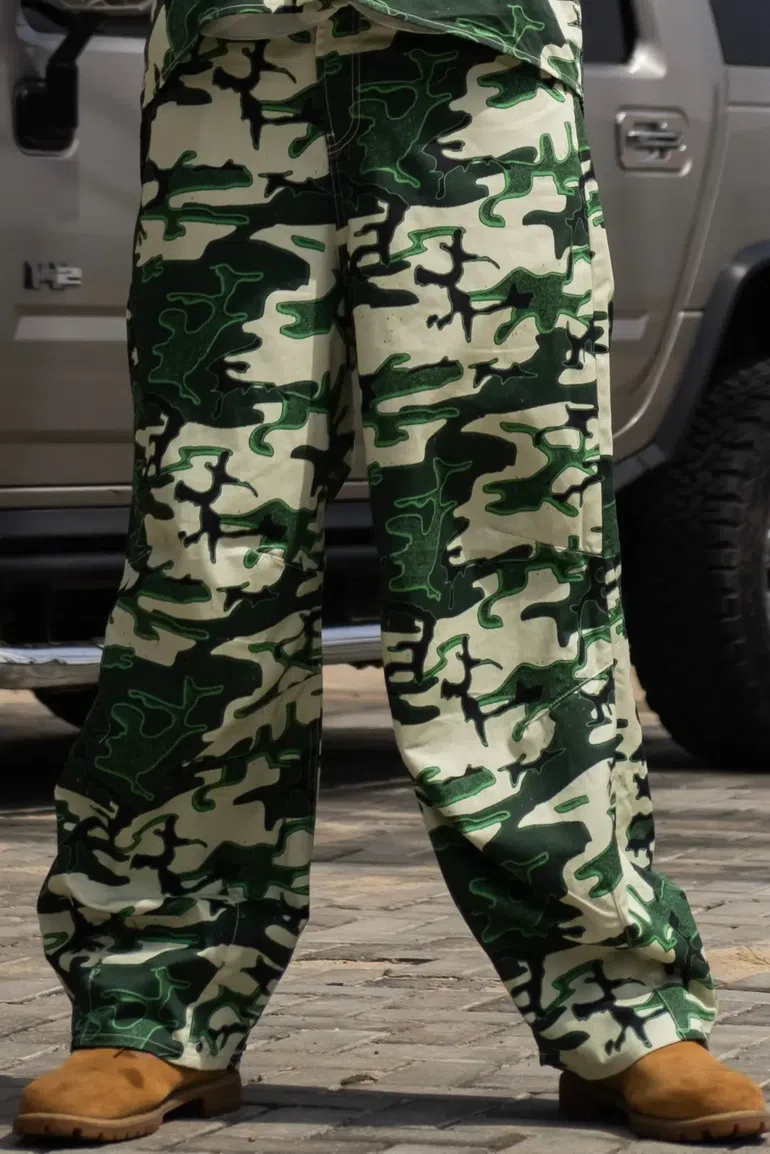 Worn by Captain Rasheedat Ajibade herself. These jeans from Homecoming blend streetwear structure with cultural patchwork, embroidery, and a fit that makes a statement.