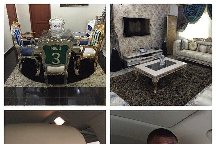 The left posted a photo mix of his dinning and sitting room of his house in Lagos, writing: 'Lagos Nigeria' alongside it.