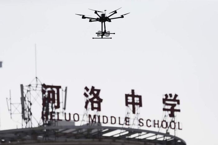 Education authorities in China on Sunday, June 7, 2015 used a drone in two testing centers in Luoyang, China for National College Entrance Exams.