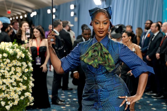 Grammy winner Tems took time to celebrate African music on the MET Gala red carpet.