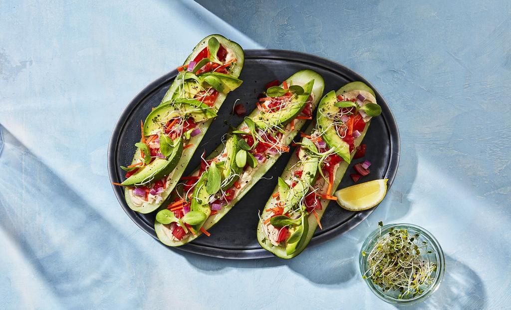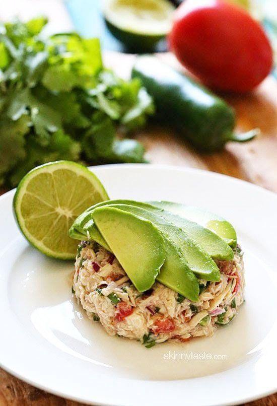 Canned Tuna Ceviche Canned tuna gets a glamorous update with a whole salad worth of veggies like plum tomato, cilantro, avocado, and red onion. Get the recipe Per serving: 153 calories, 12 g fat (1.5 g saturated), 9 g carbs, 187 mg sodium, 1 g sugar, 3 g fiber, 15 g protein Skinnytaste