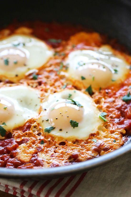 Harissa Eggs In Purgatory Think of shakshuka, but cranked up a notch with fiery red chili pepper harissa sauce and loads of garlic. Get the recipe Per serving: 103 calories, 6 g fat (0 g saturated), 5 g carbs, 253 mg sodium, 2 g sugar, 2 g fiber, 7 g protein Skinnytaste