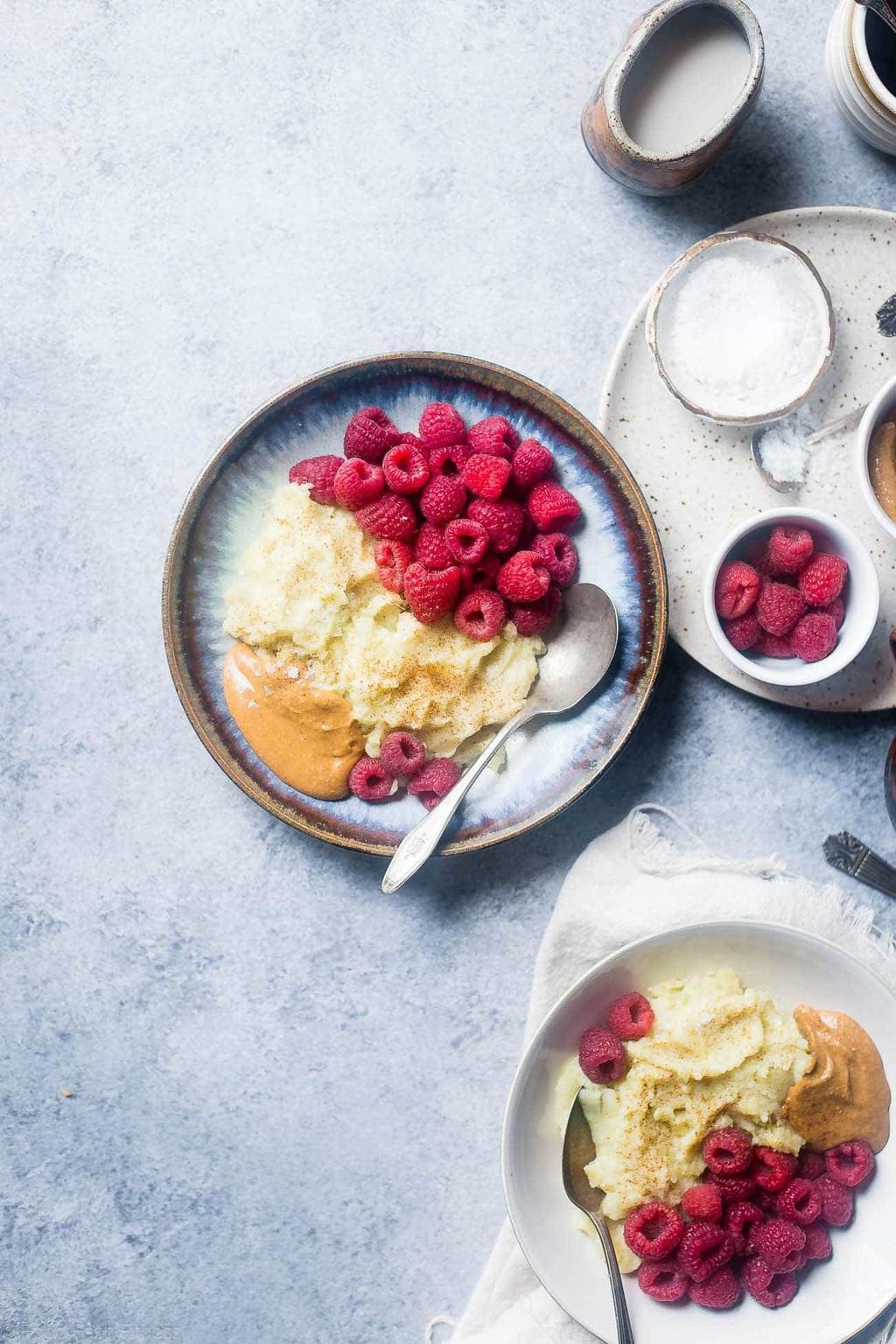 PB&J Sweet Potato Breakfast Bowl Naturally sweet with a whole lot of nutrients, this take on a classic PB&J will help you power right through your morning. Get the recipe Per serving: 204 calories, 8 g fat (1 g saturated), 42 g carbs, 177 mg sodium, 7 g sugar, 11 g fiber, 8 g protein Food Faith Fitness