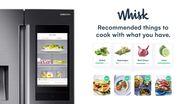 19) Best New Meal Prep Tech: Samsung Next's Whisk Smart food platform Whisk helps you meal prep like a true pro with technology that factors in your personal preferences, go-to recipes, and your location to make recommendations for what to whip up in the kitchen. At CES, demos showed Whisk pairing with Samsung's Family Hub refrigerator's ViewInside camera to curate recipes based on ingredients you already have in on hand. Mind. Blown. Date available: Spring 2020 Samsung