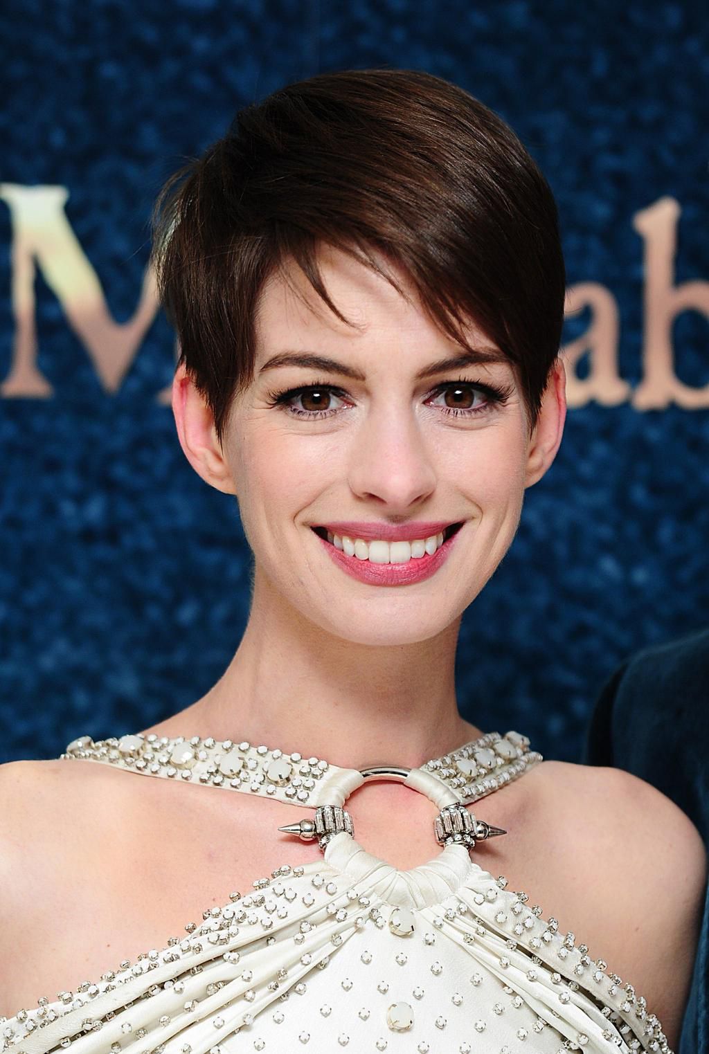 For a Role: Anne Hathaway Yes, that's Anne Hathaway in a pixie cut. The actress shaved her head for her role in Les Misrables and spent awards season (she won the Academy Award for Best Actress that year) sporting the shorter look. Ian West - PA Images - Getty Images