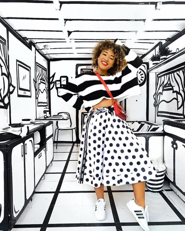 A simple trick is to pair a large, bold pattern with a smaller, more delicate one. For example, a top with big polka dots looks great with a skirt that has tiny floral prints. This contrast helps balance your outfit and makes sure one print doesn’t overpower the other.