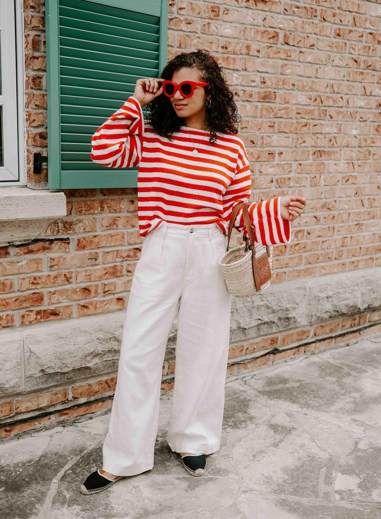 Stripes go with almost everything! Whether you’re wearing animal prints, florals, or geometric patterns, stripes can help bring everything together. A striped blazer, skirt, or t-shirt can act as the “neutral” piece in your outfit, making it easier to mix with other prints.