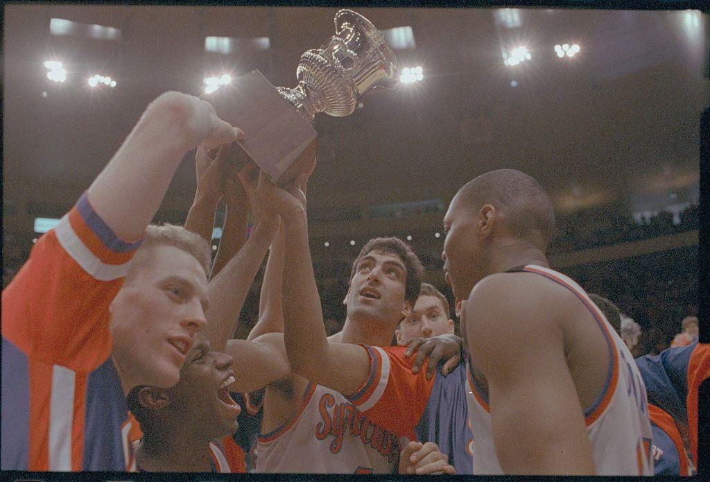 1988: Big East Winners The Big East Tournament started in 1983 and is one of the longest-running conference tournaments at any one site in college basketball history. And per the NCAA tournament rules, the winners of the Big East Tournament earn an automatic bid to March Madness. Hence part of the reason why Syracuse University is so excited to have won the Big East trophy in 1988. Bettmann - Getty Images