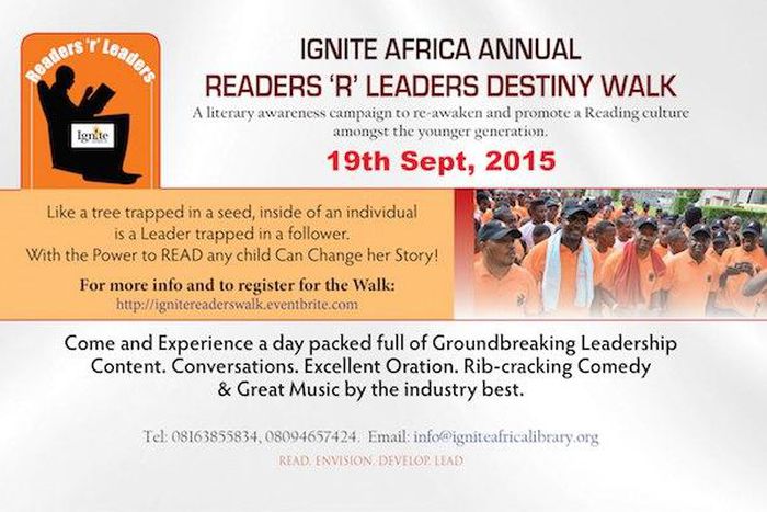 The Ignite Africa Readers Are Leaders Destiny Walk is an annual event aimed towards promoting a Reading culture in Nigeria amongst our young people.