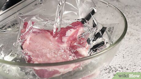 If you’re short on time, place the sealed meat in a bowl of cold water. Change the water every 30 minutes until the meat is soft. Never use warm or hot water, as it can start cooking the meat unevenly.