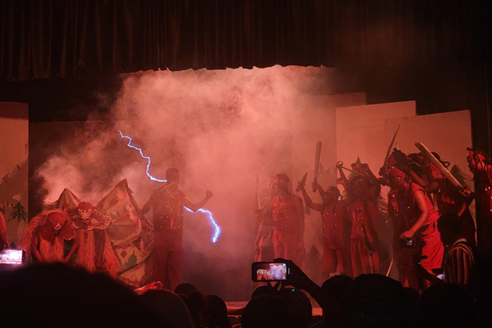 Costume and set design also contributed to the overall identity of the performance. At several points, the interaction between costume textures and Shyllon’s lighting created powerful silhouettes that gave the stage the feeling of a living tableau. These images reinforced the play’s mythological dimension, turning the actors into figures that seemed to move between the worlds of legend and theatre.