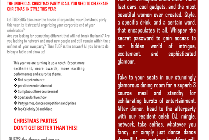 Guess the theme and tag @theunofficialchristmasparty with the hashtags #TUCP2015 and stand a chance to win 2 after party tickets. Christmas parties don't get better than this!