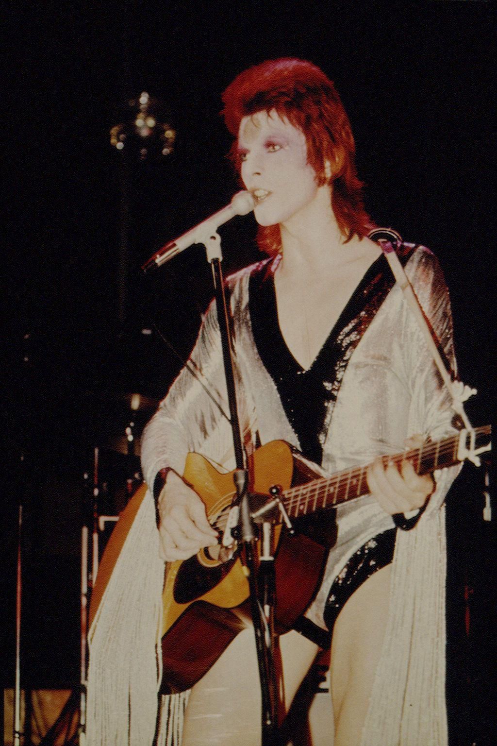 David Bowie David Bowie used his sensationalized ensembles, hair, and makeup to create his on stage persona, Ziggy Stardust, which included a bright red mullet. Sunset Boulevard - Getty Images