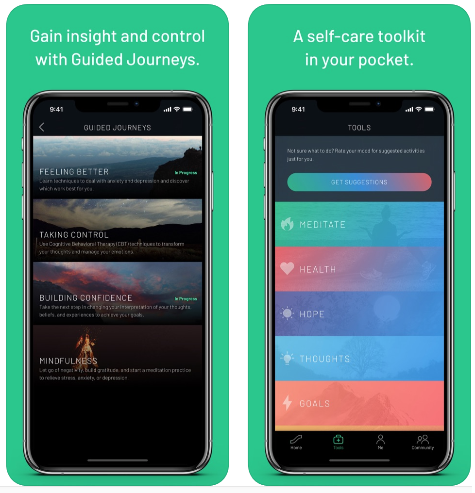17) MoodPath MoodPath is like a virtual journal. It allows you to keep track of your daily moods through asking a series of questions gauging your feelings every day. The app will look for signs of depression and give you a summary of your moods every two weeks, which you can then take to your therapist. The app is free for Android or iPhone. Courtesy