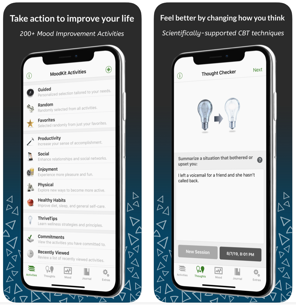 8) MoodKit MoodKit was developed by two clinical psychologists to help people learn how to change the way they think based on Cognitive Behavioral Therapy (CBT). The app is $4.99 in the App Store. Courtesy
