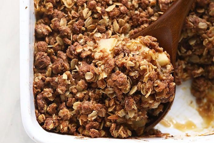 Impossibly Easy Paleo Pear Apple Pie This fun twist on good ol apple pie features a custard-like apple-pear filling with hints of cinnamon and ginger. The best part? You dont have to worry about making crust. Get the Recipe Per one-slice serving: 285 calories, 13 g fat (6.5 g sat), 34 g carbs, 21 g sugar, 3 g fiber, 6 g protein Courtesy