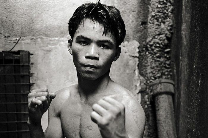 The photos show Pacquiao training at the LM Gym in Manila in 1996 at the age of 17 after he won his first 10 professional bouts.