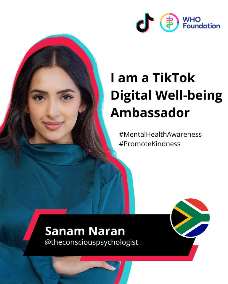 Sanam Naran is a counselling psychologist, founder of Conscious Psychology and co-founder of Sanctuary in the City. Sanam is also a social media mental health content creator with over 600,000 followers on her platforms.