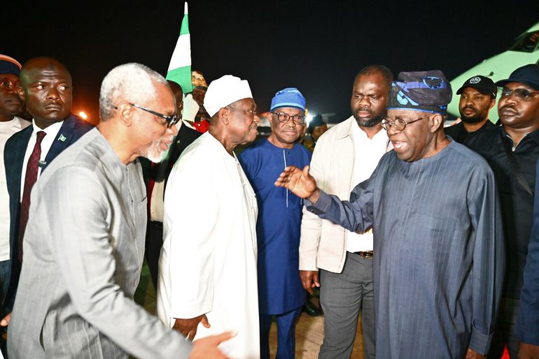 President Bola Ahmed Tinubu returned to Nigeria on Monday, April 21, following a nearly three-week trip to France and the United Kingdom, prompting a flurry of mixed reactions from Nigerians online.