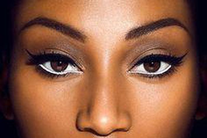 A dramatic winged eyeliner look is bold and instantly opens the eyes and glams up the face.