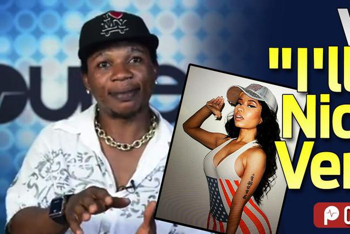During his hilarious interview, the aspiring artiste spoke about Drake, Nicki Minaj and Meek Mill. The 'Why Evils' singer said he loves the YMCMB first lady and given the chance he will love her more than Drake and Meek Mill.
