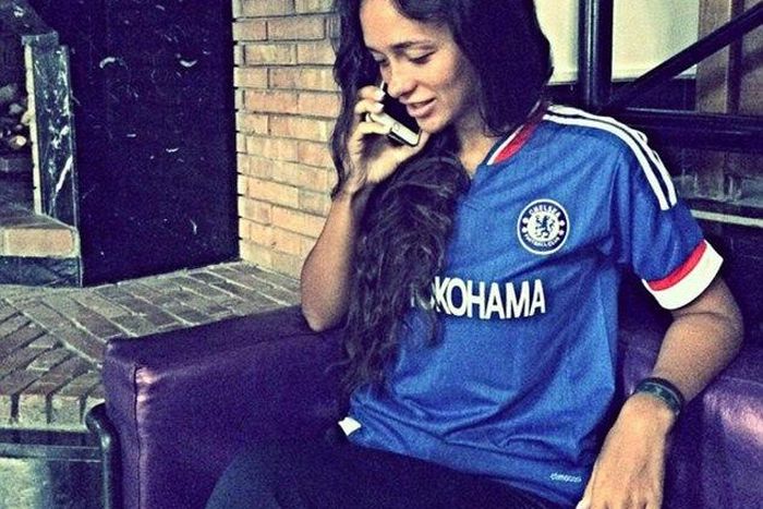 The beauty shared a photo of herself on in Instagram wearing a Chelsea kit sparking reports that she is about replace Eva Carneiro who has had her role in the club reduced after her row with Jose Mourinho.