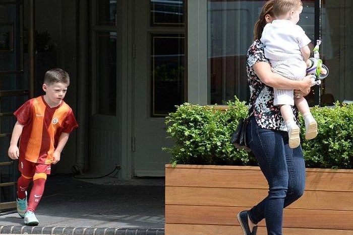 Kai, Rooney's first son donning a Galatasaray jersey was seen in high spirit as he accompanied his mother and younger brother.