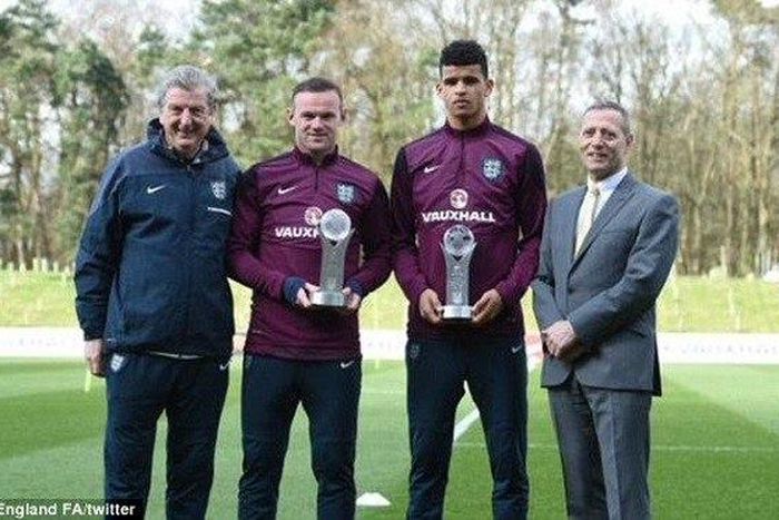 Rooney was handed his prize at a training session after votes by fans across the country declared him winner of the accolade.