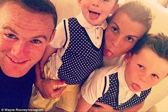 In the photo, Rooney's sons Klay and Kai with his wife Coleen, all stuck their tongues out while the Manchester United striker was all smiles.