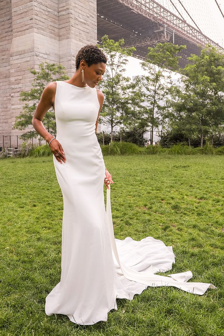 You like things simple, elegant, and sleek? The sheath wedding dress is your type.