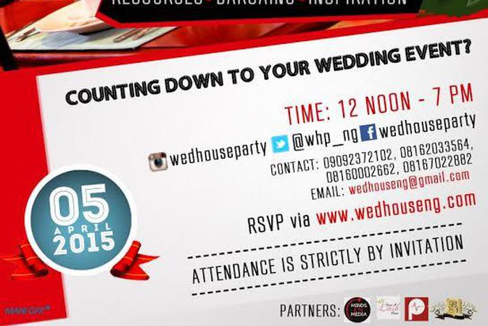 The WEDDING HOUSE PARTY is Calling all Brides-To-Be to their Bridal workshop featuring the widest selections of Resource and Vendors in Lagos metropolis.