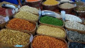 Grains like rice, beans, and garri