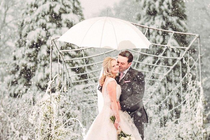 Carly and Chris Atwill's wedding looked like something straight from a fairy tale book with eight inches of snow falling on Saturday, December 12.