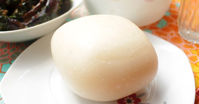 Nigerians typically eat akpụ with soups such as egusi, oha, bitterleaf (onugbu), ogbono, or vegetable soup. Among the Yoruba, fufu is also prepared differently, using sieved fermented cassava that is stirred over heat into a smooth, elastic dough.
