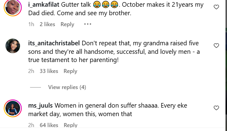 His comments have since sparked mixed reactions, with many arguing that single mothers are fully capable of raising well-rounded men.