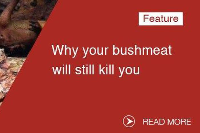 What is more, before eating bush meat, you need to cook it thoroughly. Health experts say five minutes of boiling kills the vast majority of pathogens found in food.