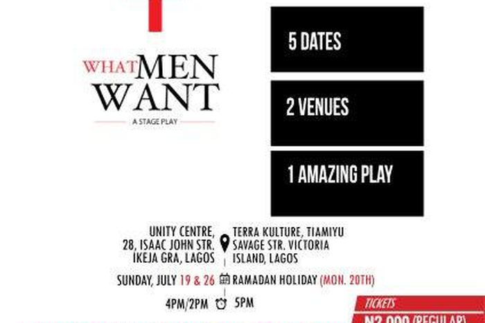 The stage play will be showing on all Sundays in July at the Unity Centre, 28, Isaac John Street, Ikeja GRA, and on Ramadan Monday, July 20, 2015 at Terra Kulture, Tiamiyu Savage Street,Victoria Island, Lagos.