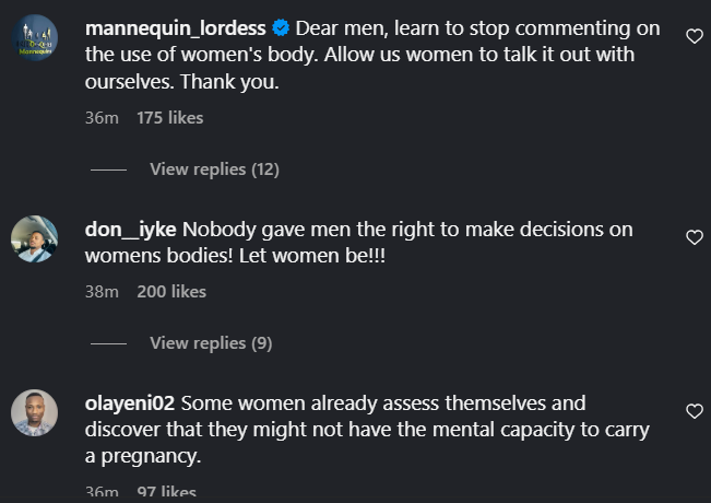 Dear men, learn to stop commenting on the use of women's body. Allow us women to talk it out with ourselves. Thank you.