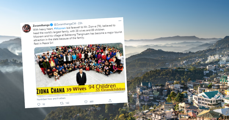 Ziona was born in 1945 and led a Christian sect called Chana Pawl, which promotes polygamy. The group was founded by his father in 1942 and reportedly has hundreds of members. In the sect, men are allowed to marry multiple wives as long as they can provide for them.