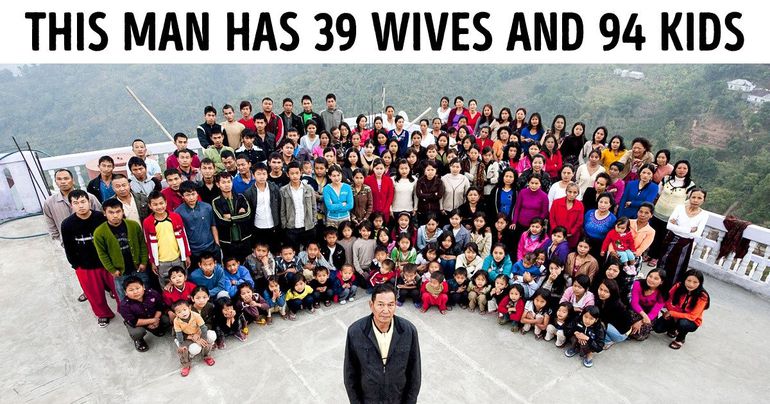 Ziona married 39 wives, fathered 94 children, had 14 daughters-in-law, and welcomed 33 grandchildren before his death in 2021. That brought his total family size to 181 people, all living under one roof.
